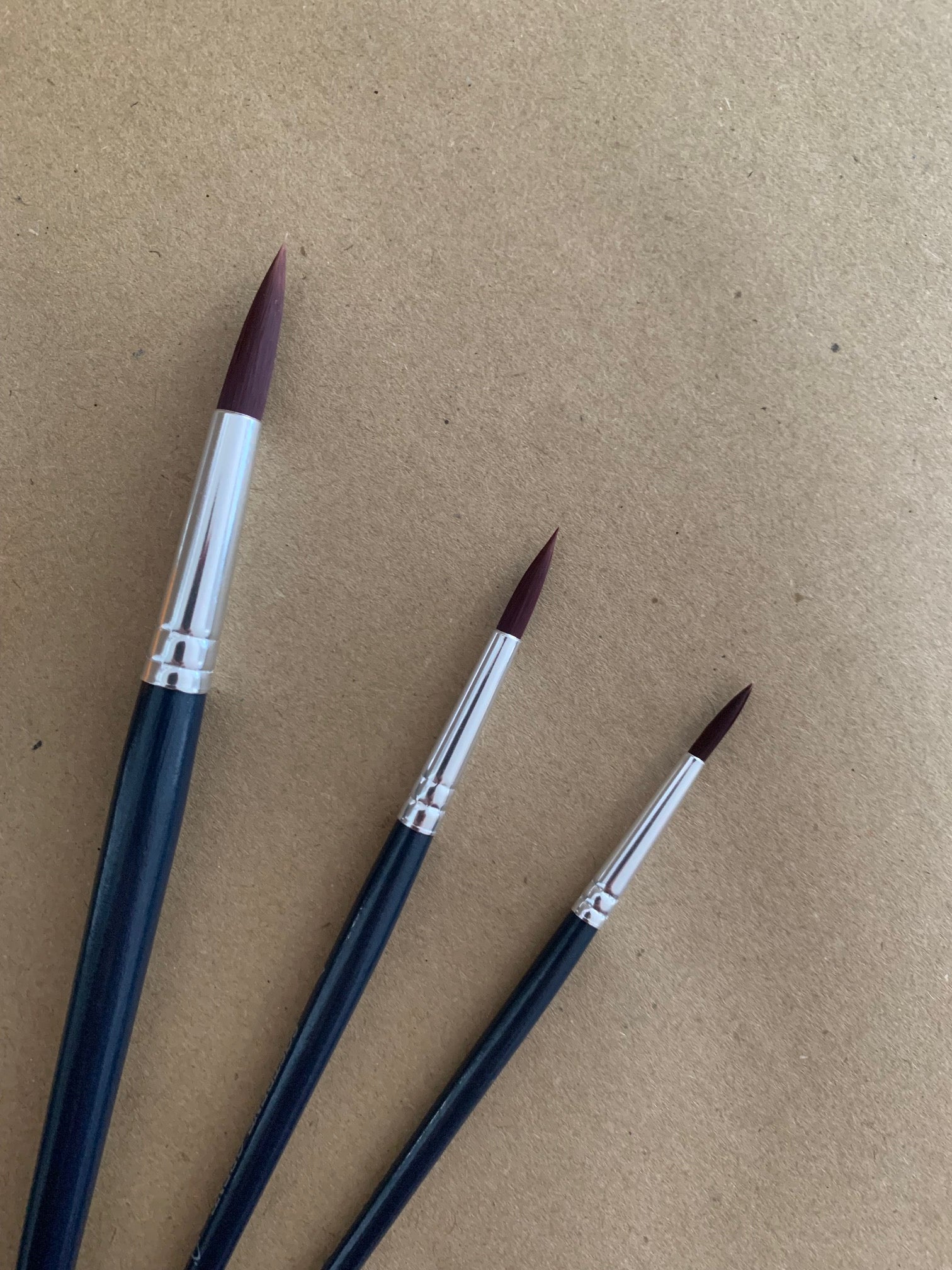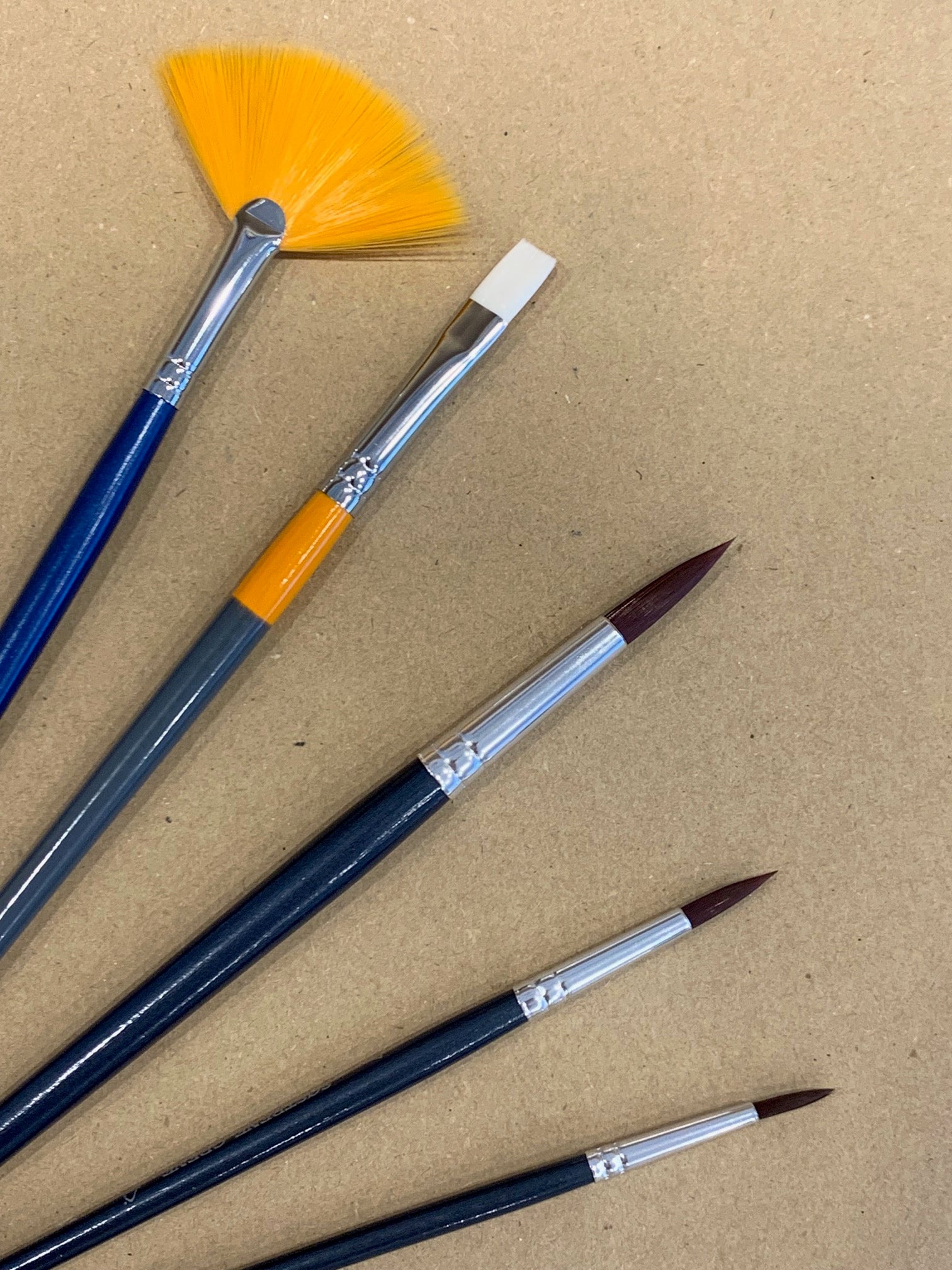 Pinselset bestehend aus 5 Pinseln, Fächerpinsel zum Grundieren, breiter Pinsel, spitz zulaufende Pinsel 3x